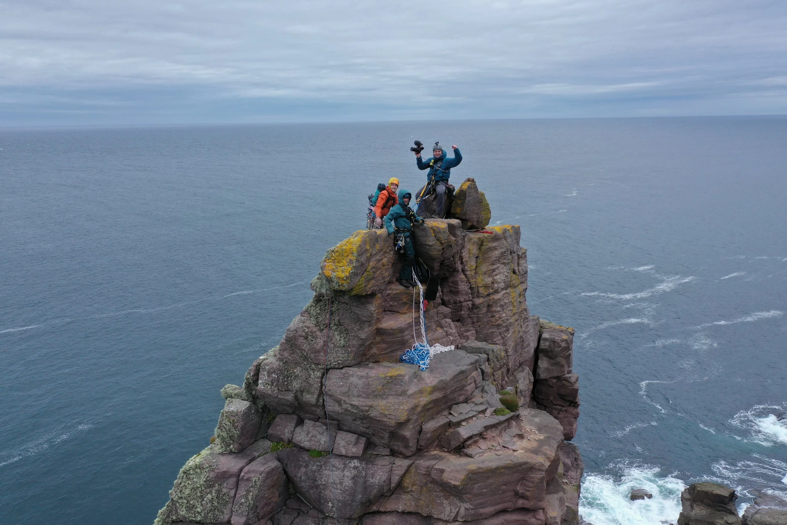 The weather definitely made us work here and Rich and milky headed up a day early on a lovely sunny day to fix the ropes for Hamish to jug up infant of Kenny and film. Hamish Macleod was directing and doing the main camera, while I shot two second cameras from the shore. We then got them to climb it again so we could get my drone shots without the extra ropes etc on the route. with heavy swells and often rain we managed to get the sequences done in the end:) Hopefully make a great episode. Rich Parker and Malcolm Airey did the safety for this. Shetland next I believe but into June for that:)