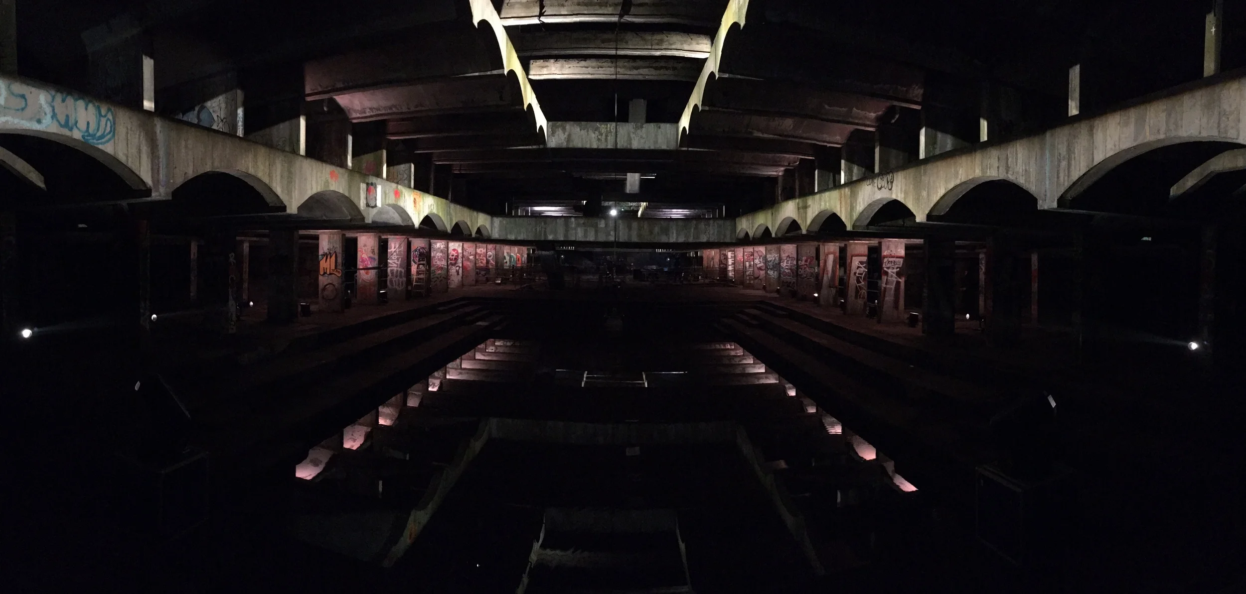 Filming at an light show in this 1960's building. Normally I can't fly at night outside due to UK law but this was inside a building so it was great to have some challenging indoor no GPS flying to capture their amazing light show.